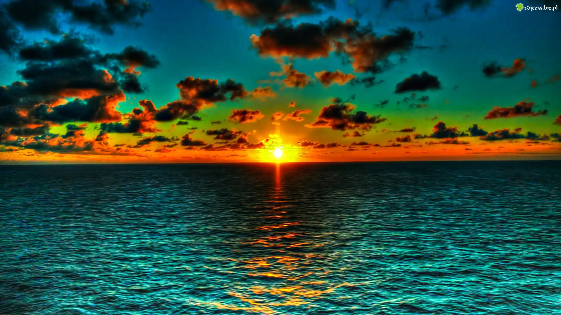 Zdjęcie Morze, Fale, Chmury, Zachód, Słońce, Promienie
