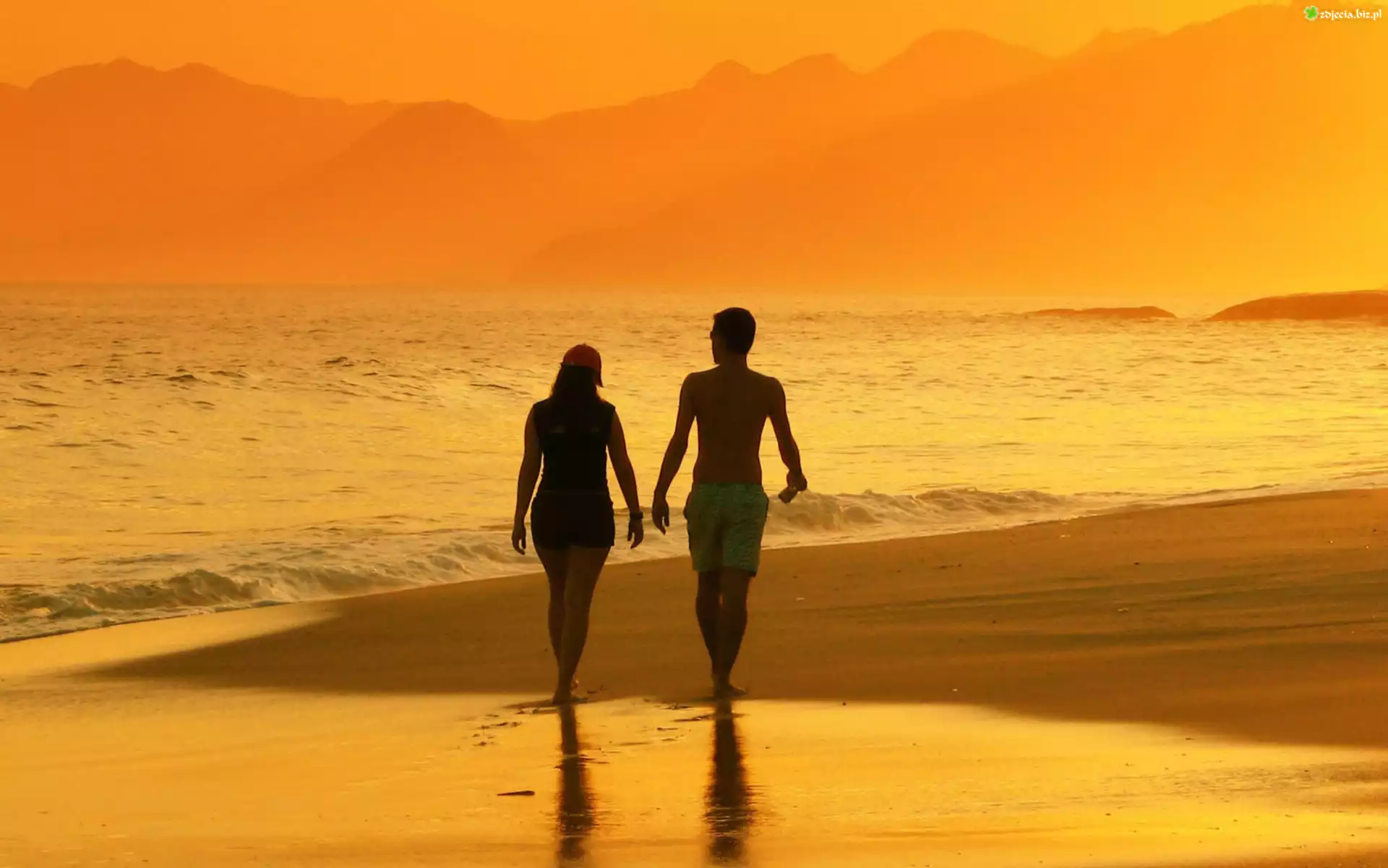 Zdjęcie Morze, Plaża, Spacerująca, Para