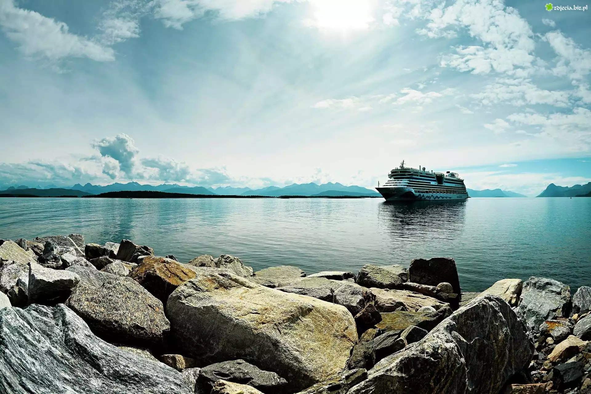 Zdjęcie Morze, Kamienie, Statek, Niebo
