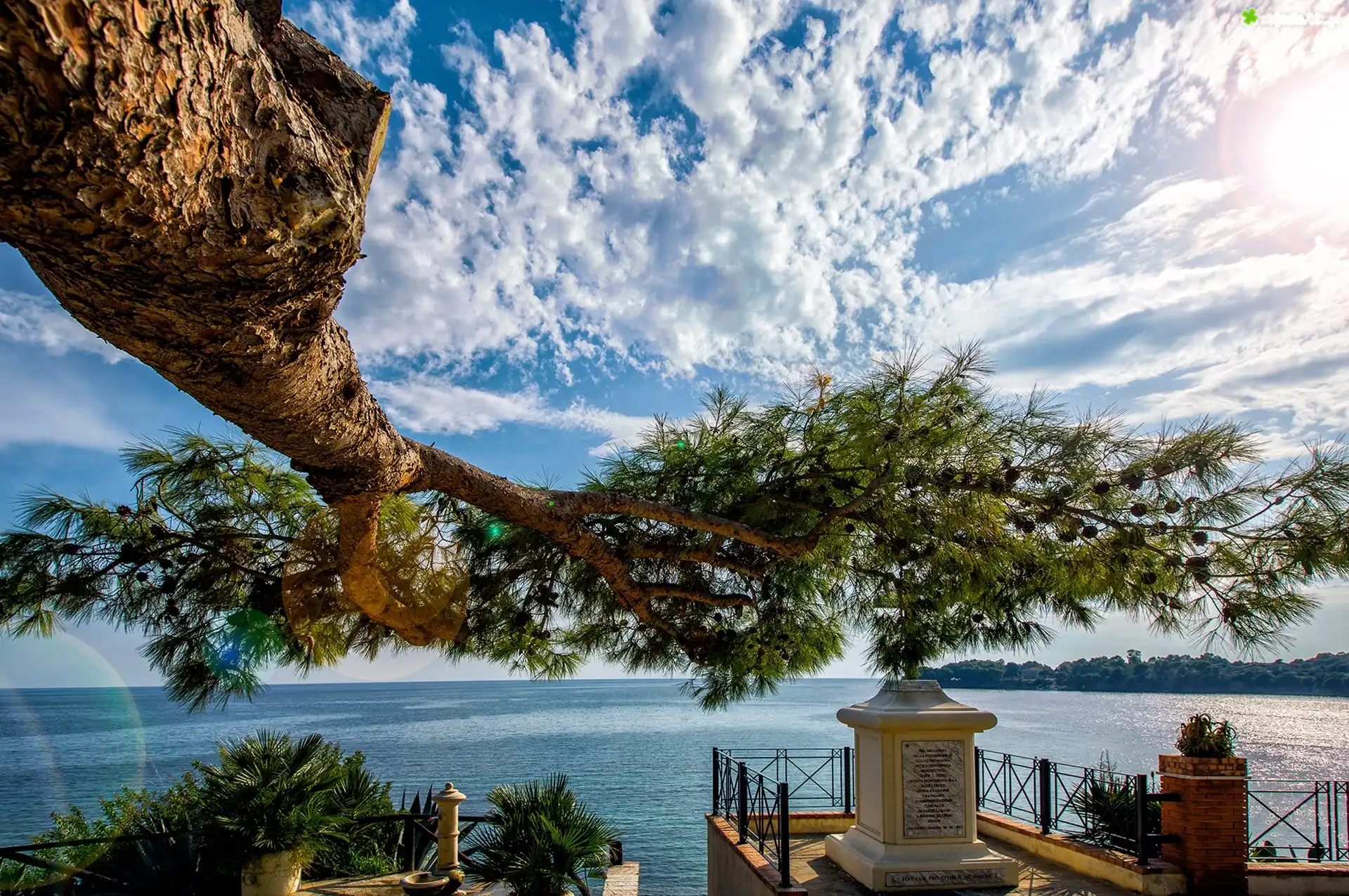 Zdjęcie, Morze, Chmury, Drzewo, Taras, Wybrzeże