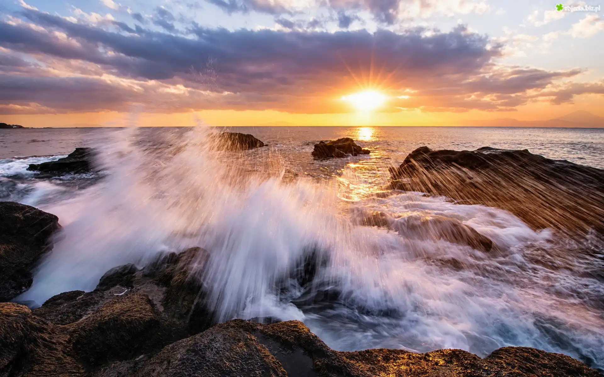 Zdjęcie Morze, Fale, Wschód, Słońca