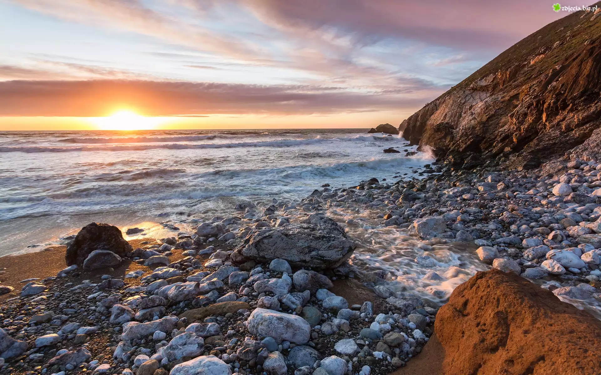 Zdjęcie, Morze, Kamienie, Wschód słońca