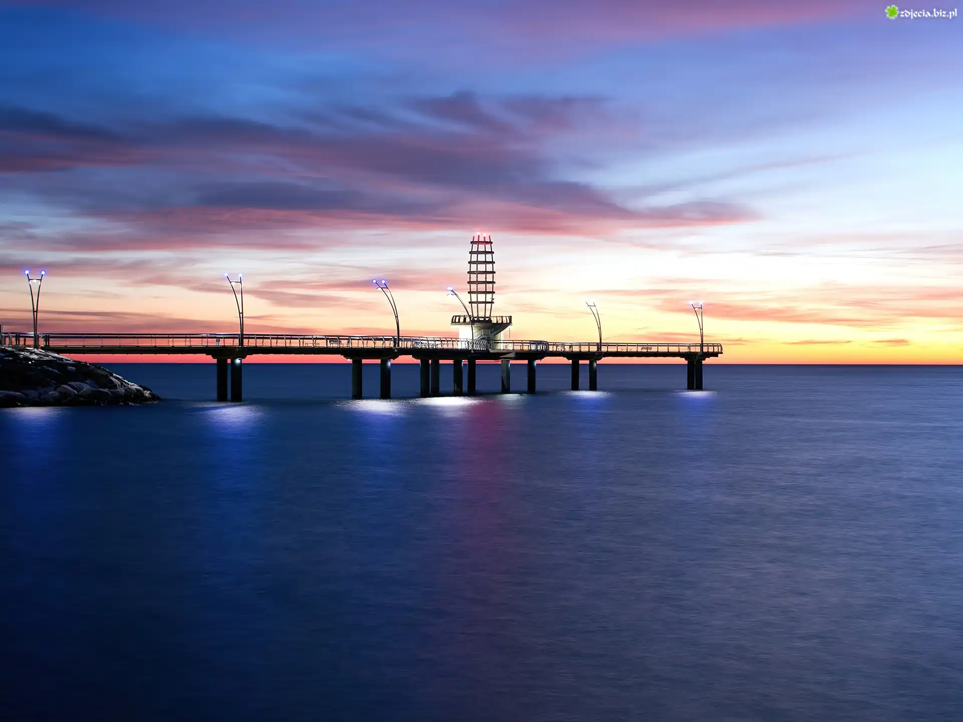 Zdjęcie Morze, Molo, Wschód, Słońca