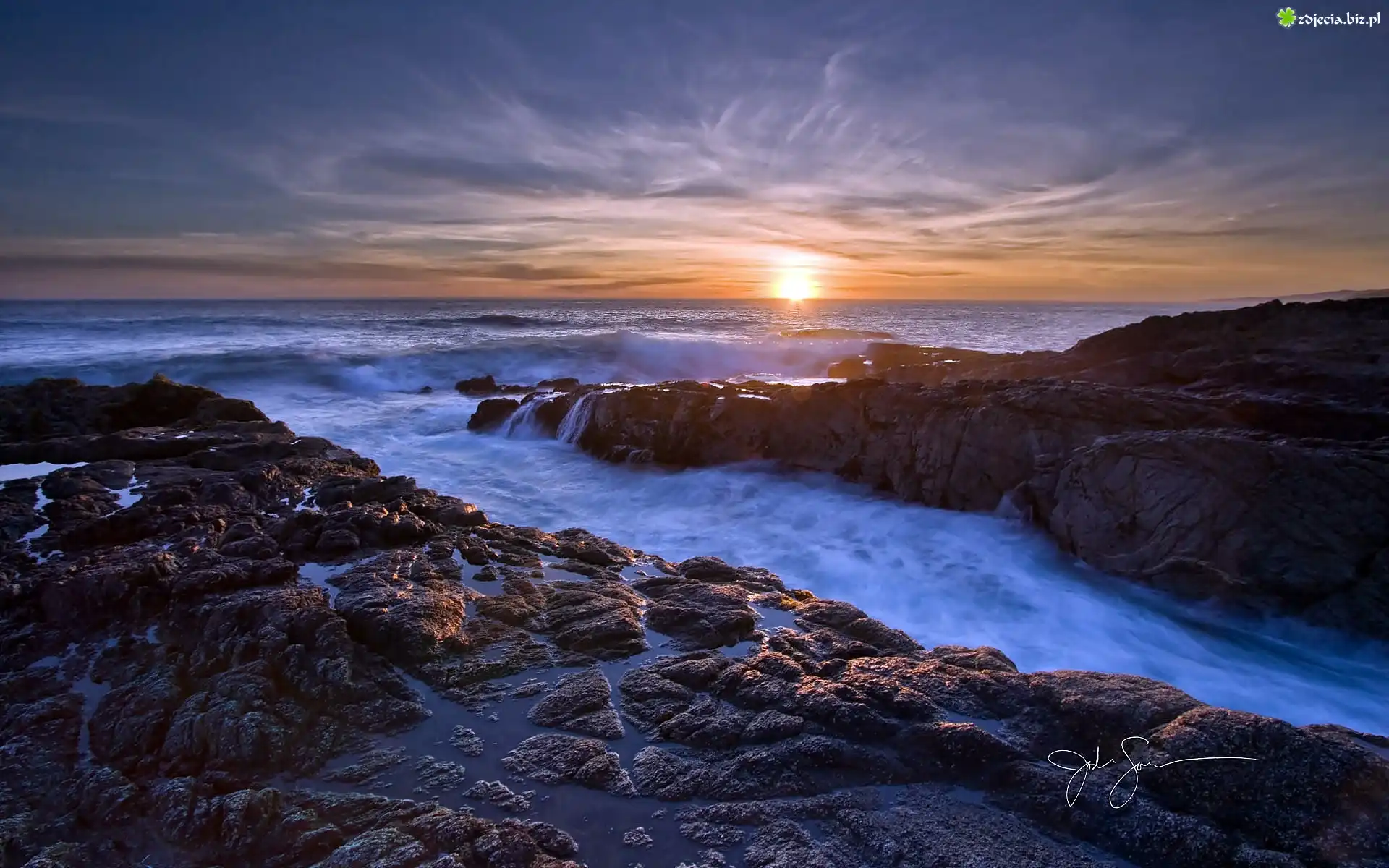 Zdjęcie Morze, Wybrzeże, Skały, Wschód, Słońca