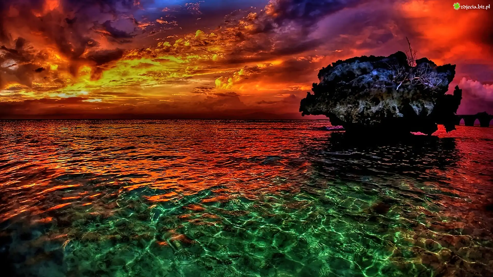 Zdjęcie Morze, Skała, Kolorowe, Zachmurzone, Niebo