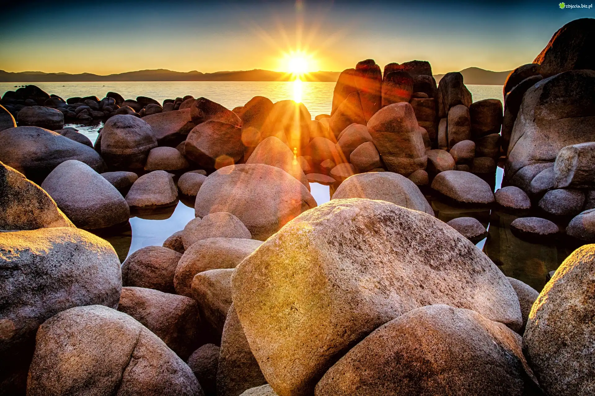Zdjęcie, Morze, Kamienie, Zachód Słońca
