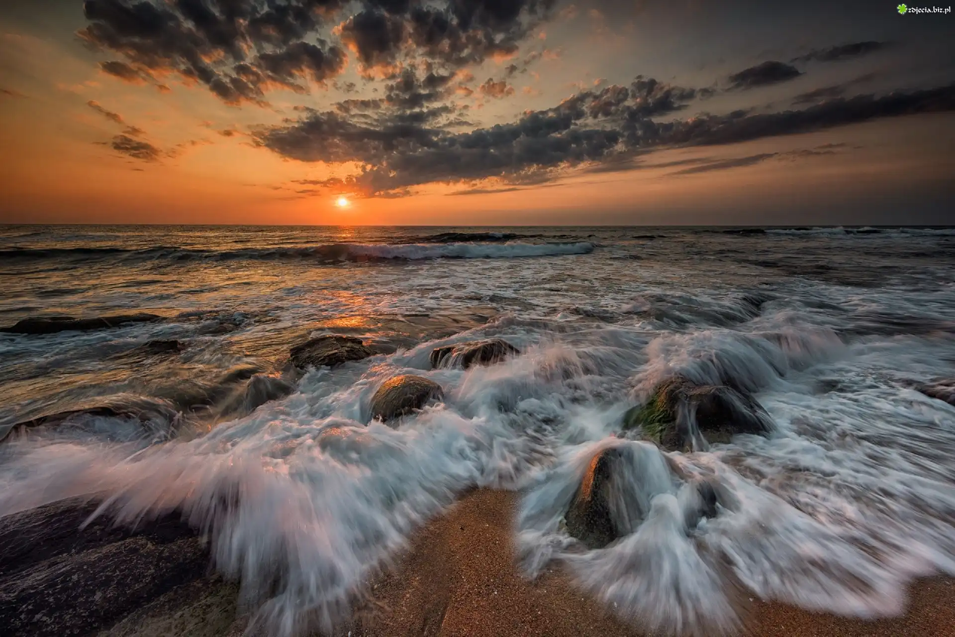 Zdjęcie Morze, Kamienie, Zachód, Słońca