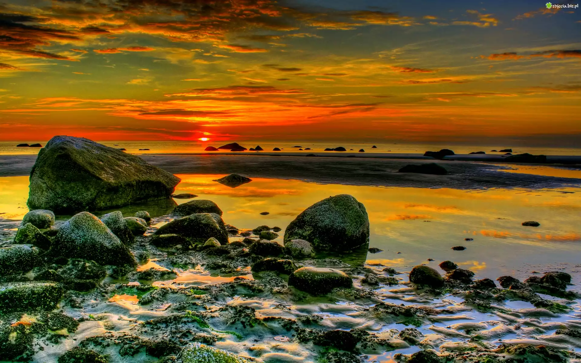 Zdjęcie Morze, Kamienie, Zachód, Słońca