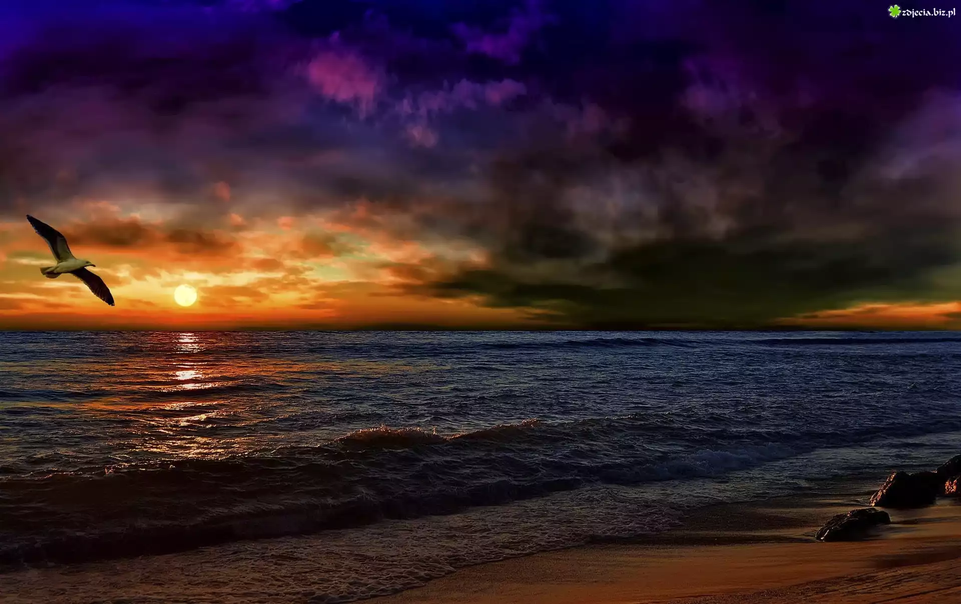 Zdjęcie Morze, Chmury, Mewa Zachód słońca