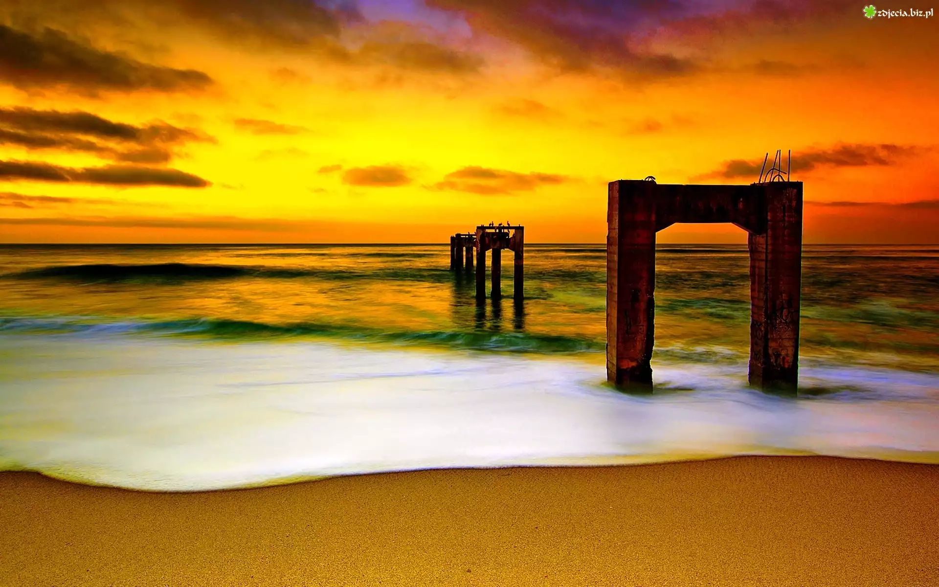 Zdjęcie Morze, Plaża, Zachód Słońca