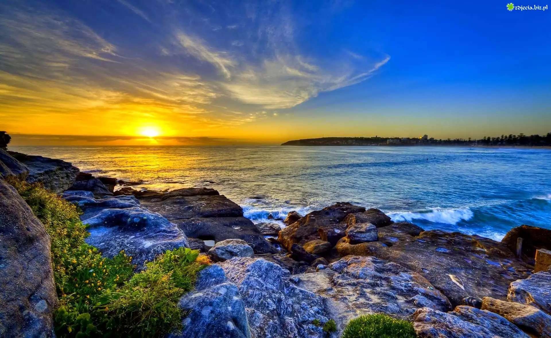 Zdjęcie, Morze, Skały, Zachód Słońca
