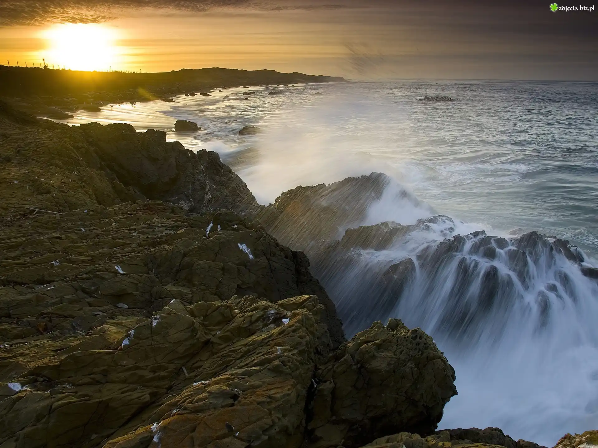 Zdjęcie Morze, Skały, Zachód Słońca