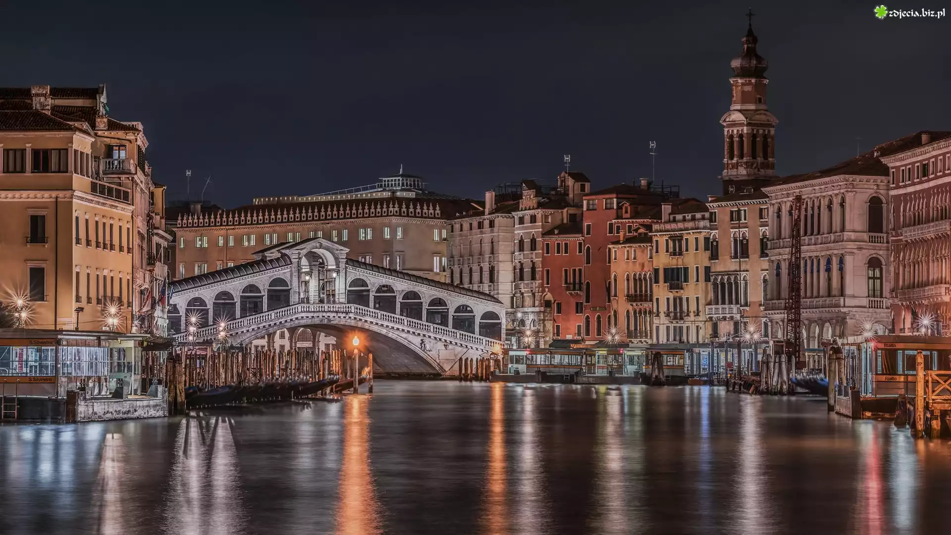 Zdjęcie Włochy, Wenecja, Kanał, Most, Rialto, Domy, Noc