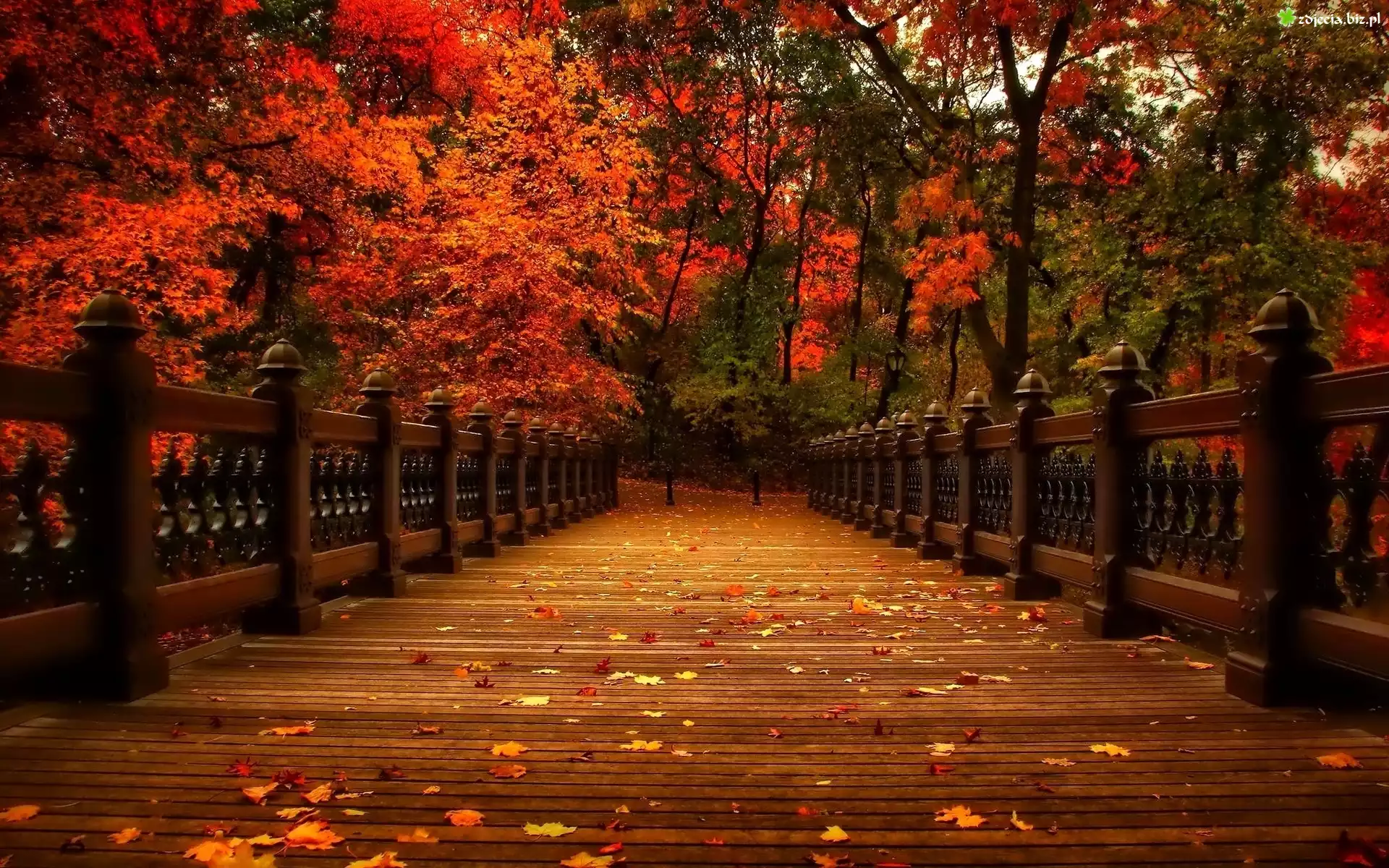 Zdjęcie Most, Park, Kolorowe, Drzewa, Liście, Jesień