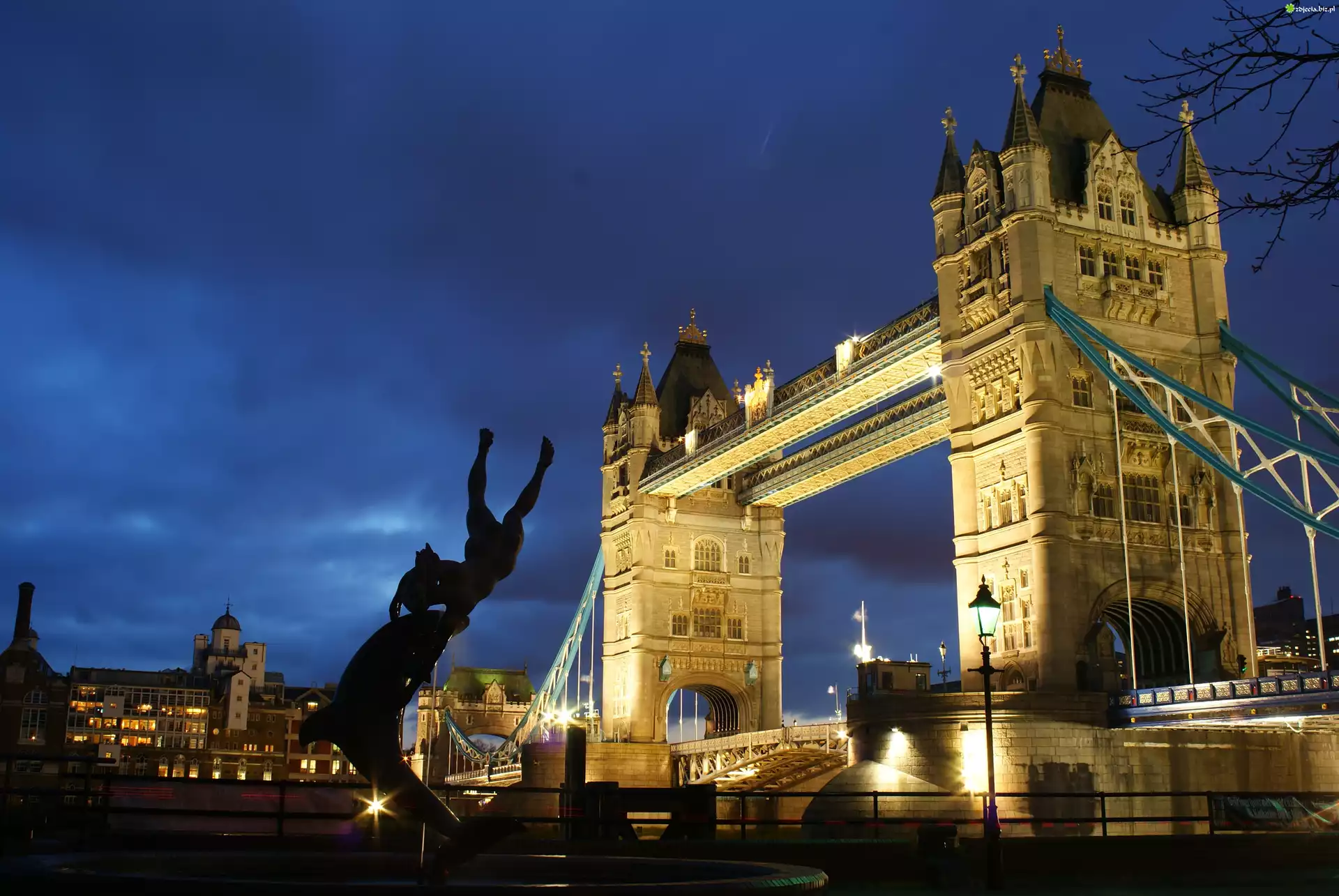 Zdjęcie, Most, Tower Bridge, Londyn, Noc
