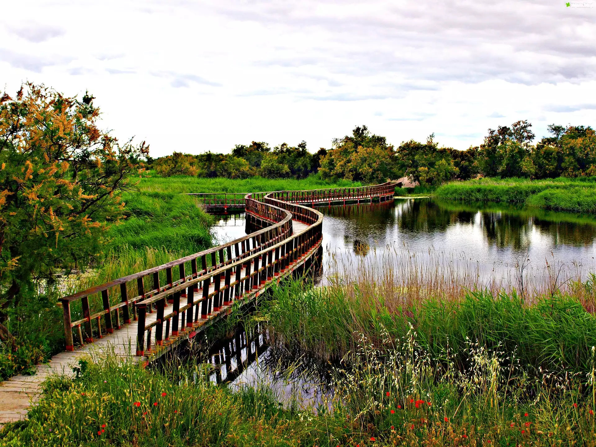 Zdjęcie Most, Jesień, Rzeka, Trawa