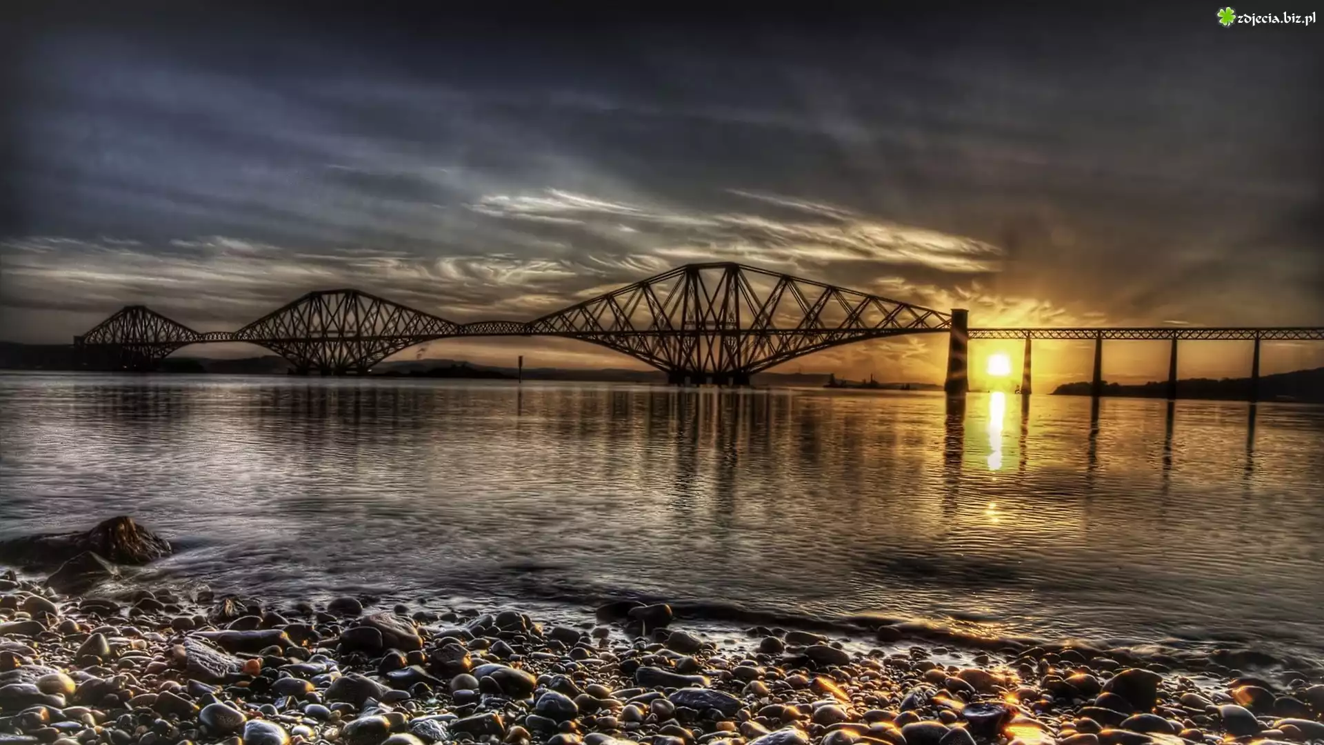 Zdjęcie Most, Rzeka, Zachód, Słońca, Kamienie