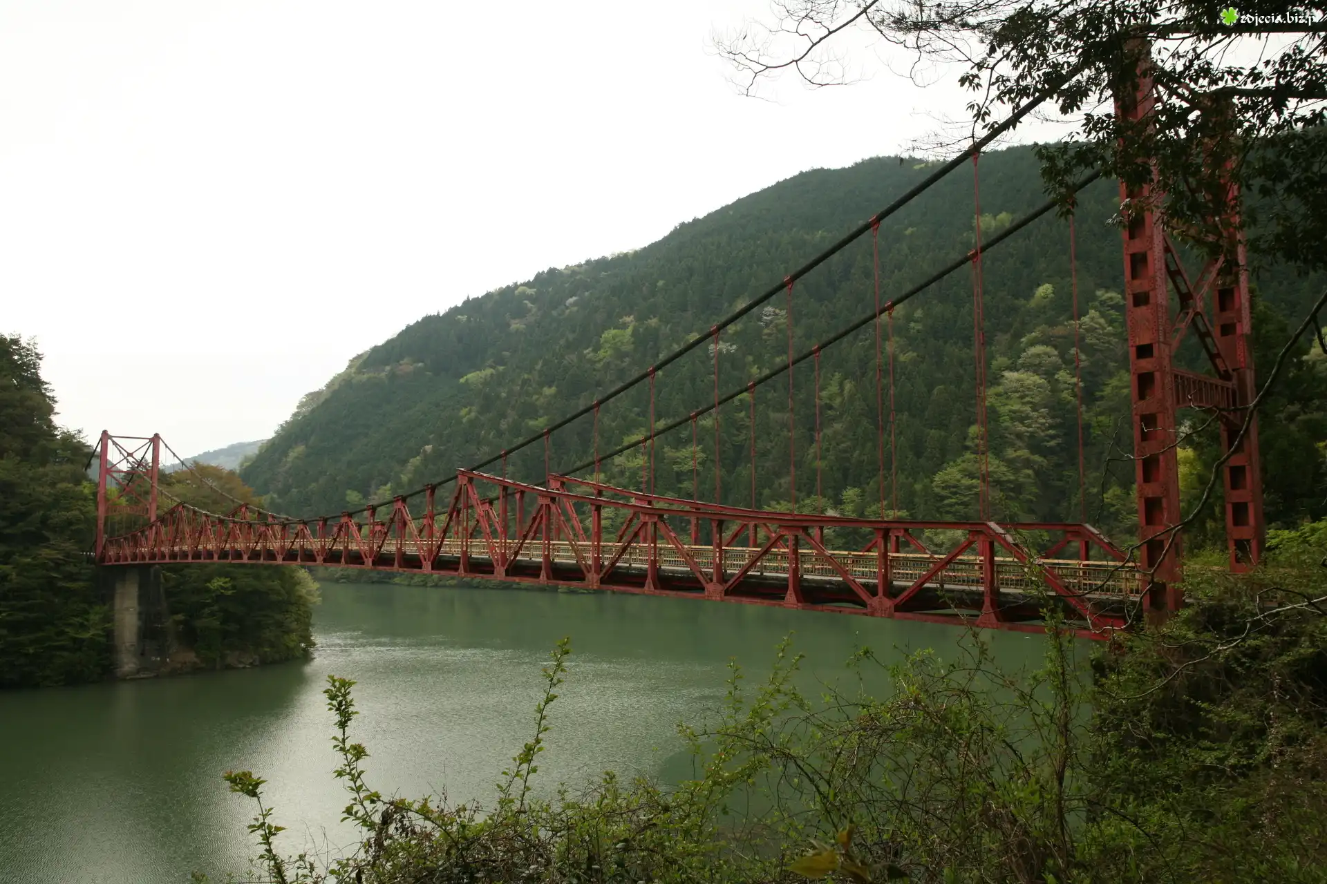 Zdjęcie, Most, Wiszący, Rzeka, Zalesiona, Góra