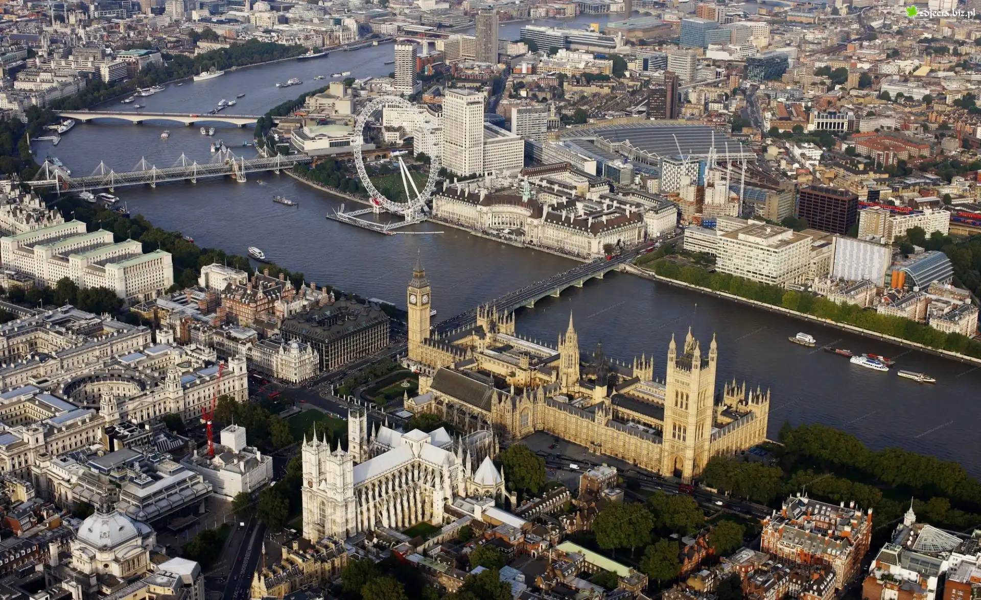 Zdjęcie, Anglia, Londyn, Mosty, Rzeka Tamiza, Z lotu ptaka