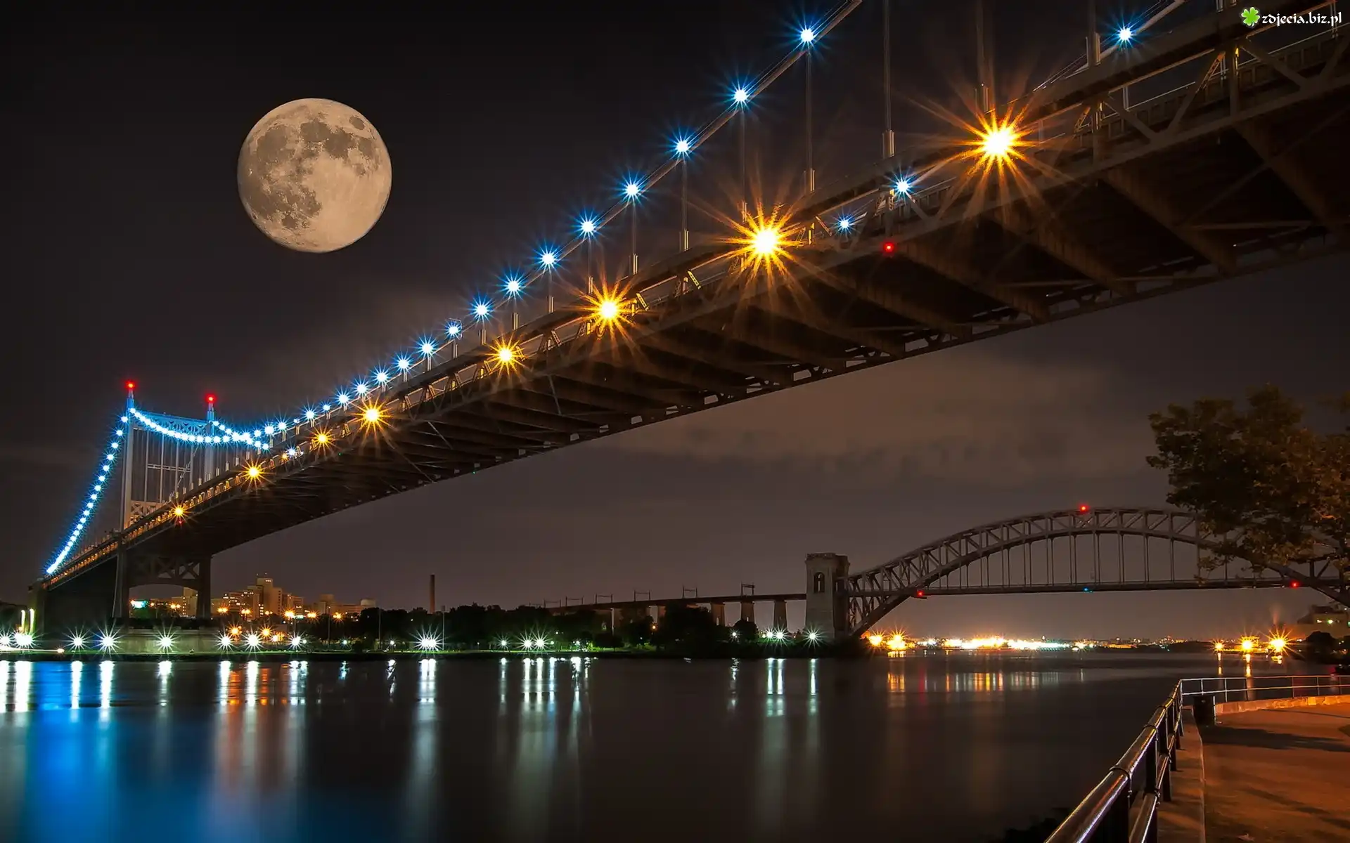 Zdjęcie Mosty, Rzeka, Pełnia, Księżyc