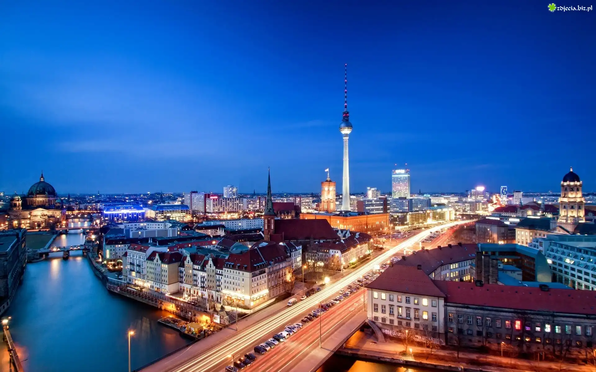 Zdjęcie Rzeka, Mosty, Wieża, Kościoły, Domy, Berlin, Niemcy