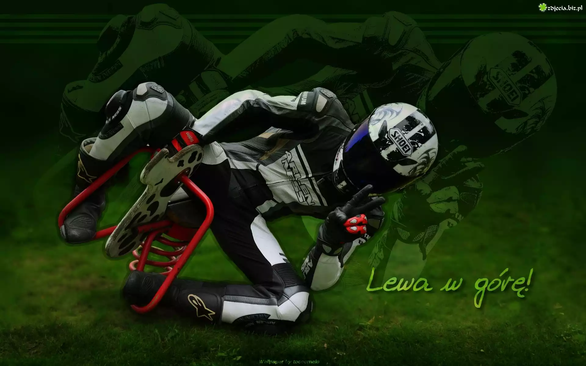Zdjęcie Motocyklista, Huśtawka, Kombinezon, Żart