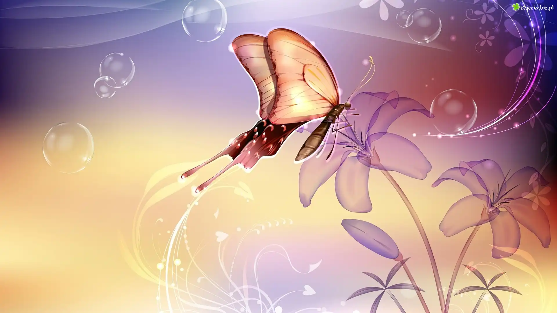 Zdjęcie Ładny, Motyl, Kwiaty