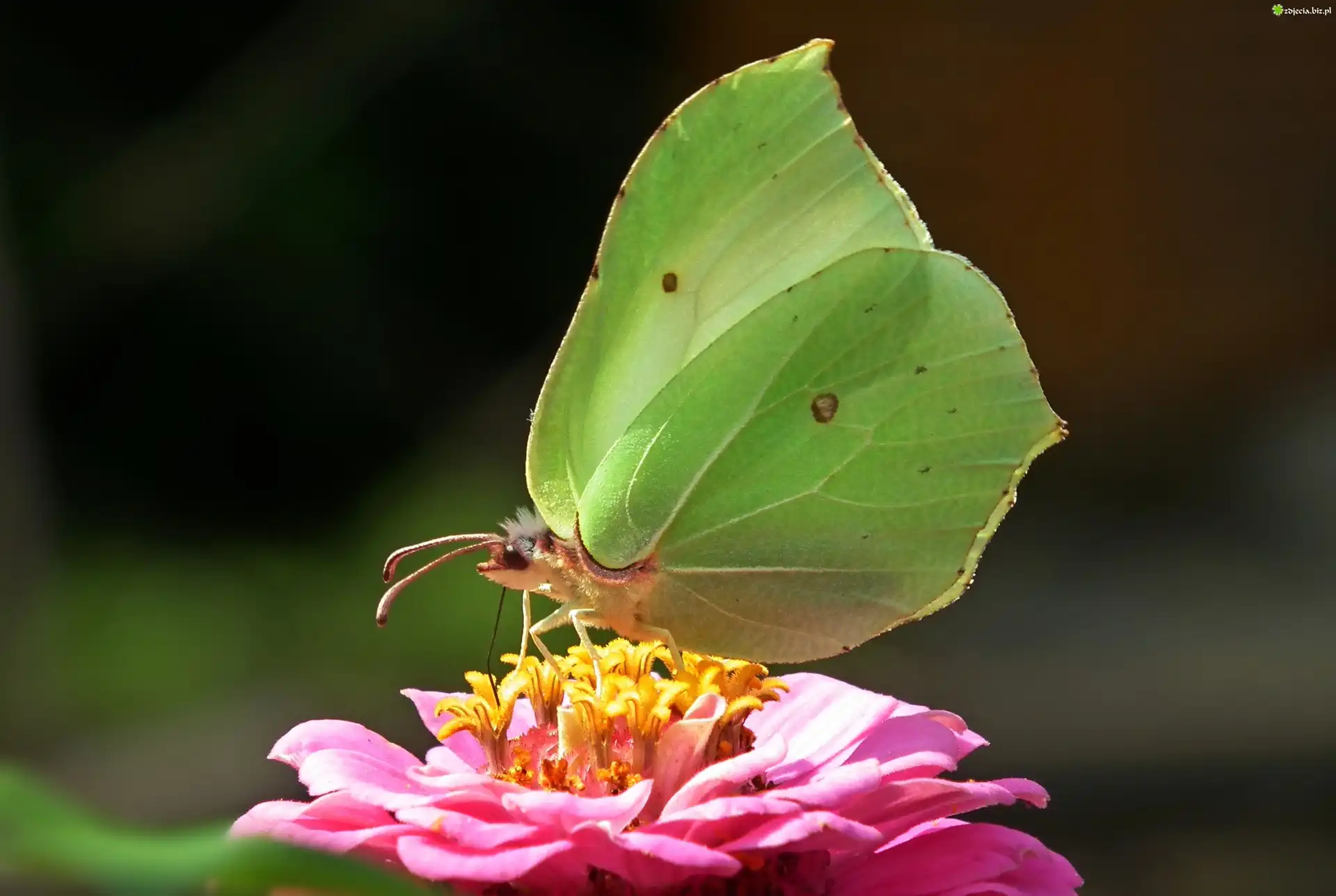 Zdjęcie Motyl, Cytrynek, Kwiat, Cynia