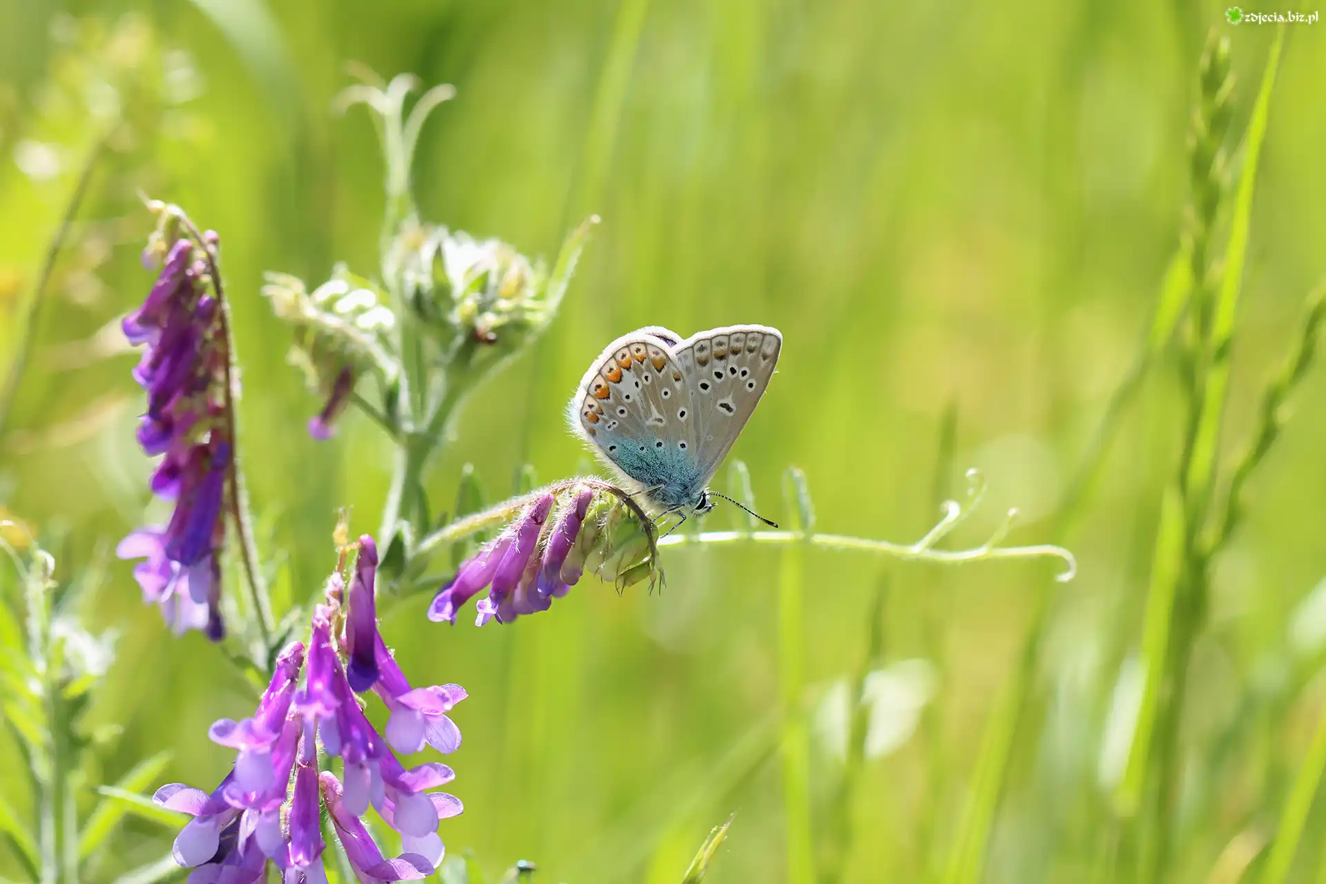 Zdjęcie Motyl, Modraszek ikar, Kwiat, Wyka
