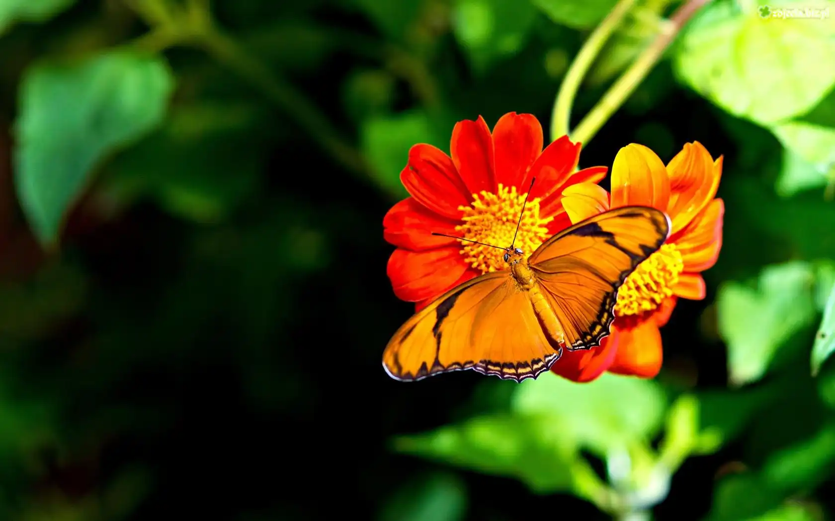Zdjęcie Pomarańczowy, Motyl, Kwiat