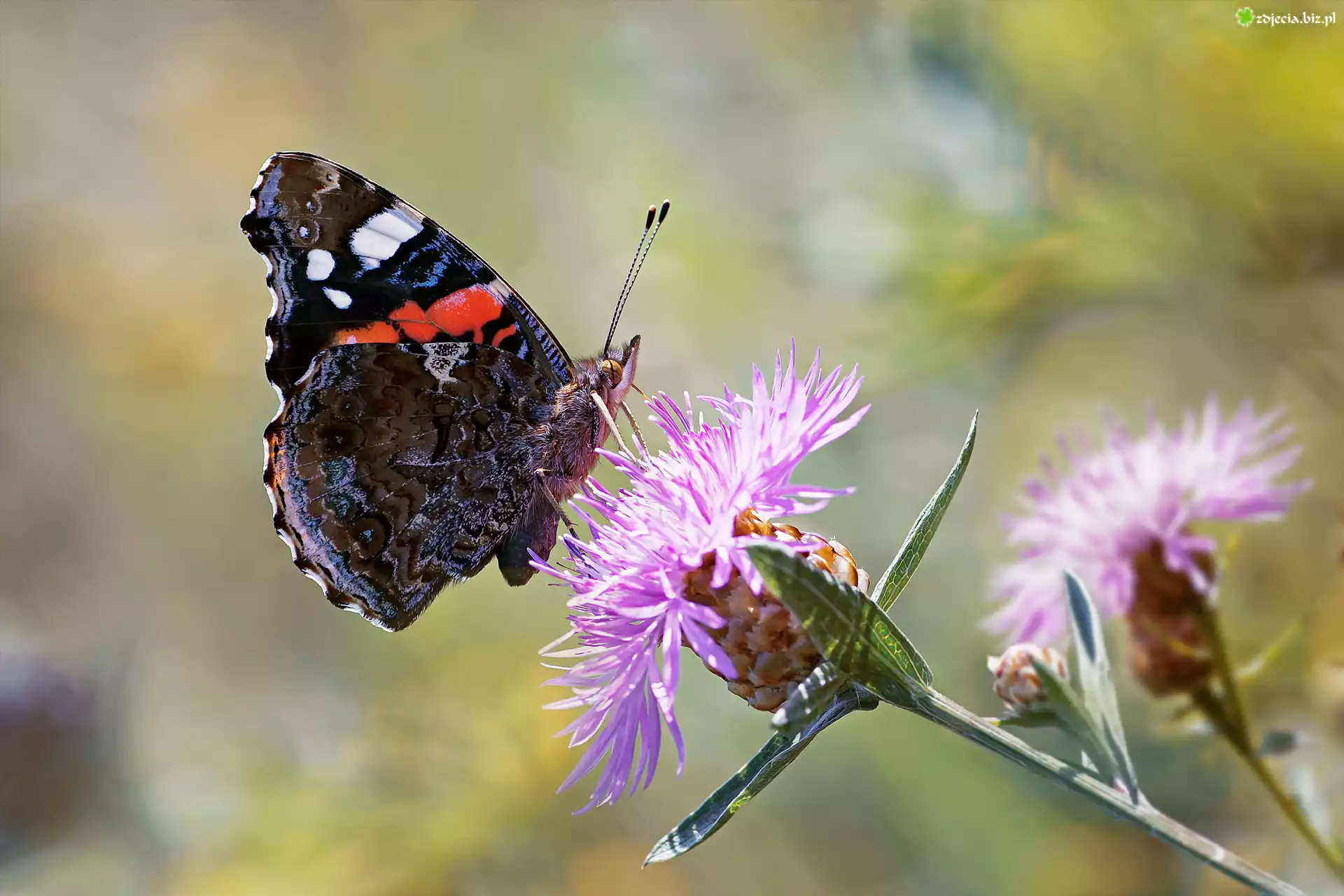 Zdjęcie, Motyl, Rusałka admirał, Kwiaty, Rozmyte, Tło
