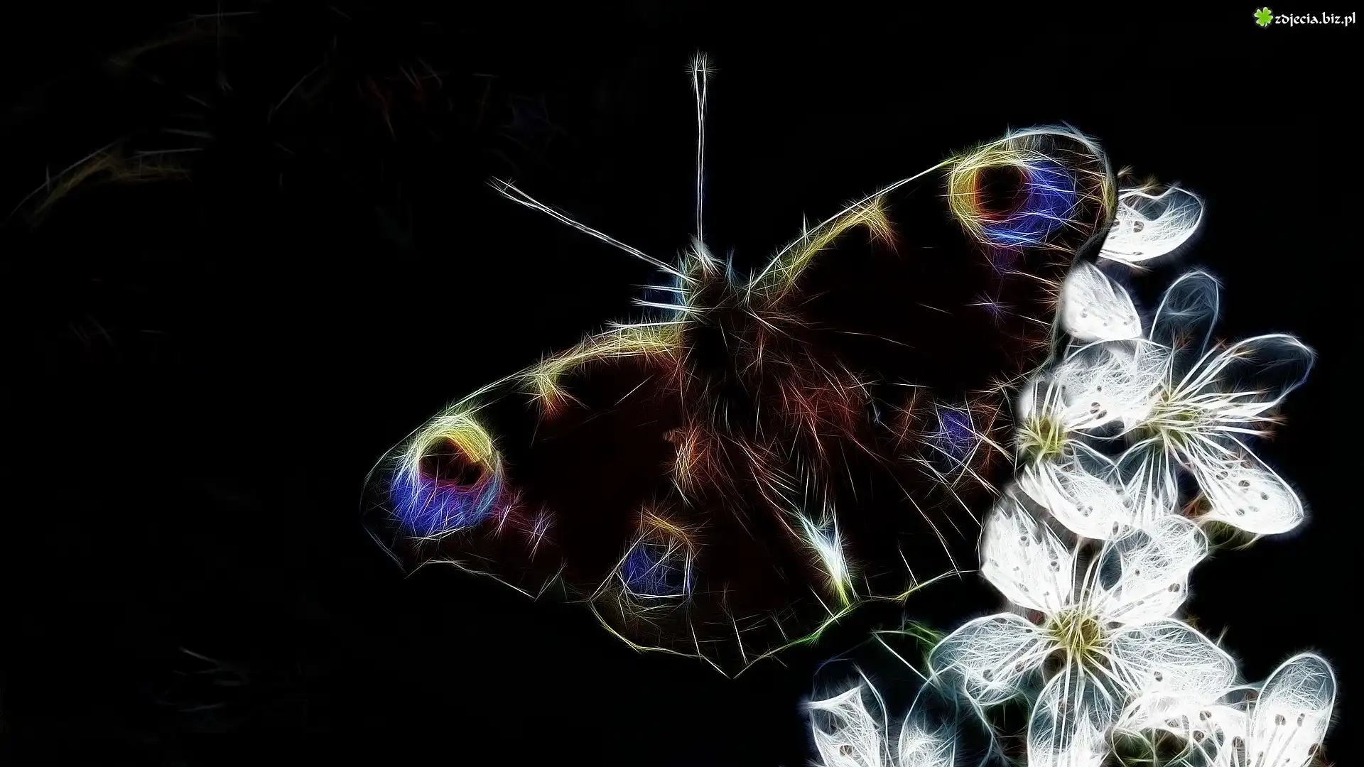 Zdjęcie Motyl, Białe, Kwiaty, Czarne, Tło, Fractalius