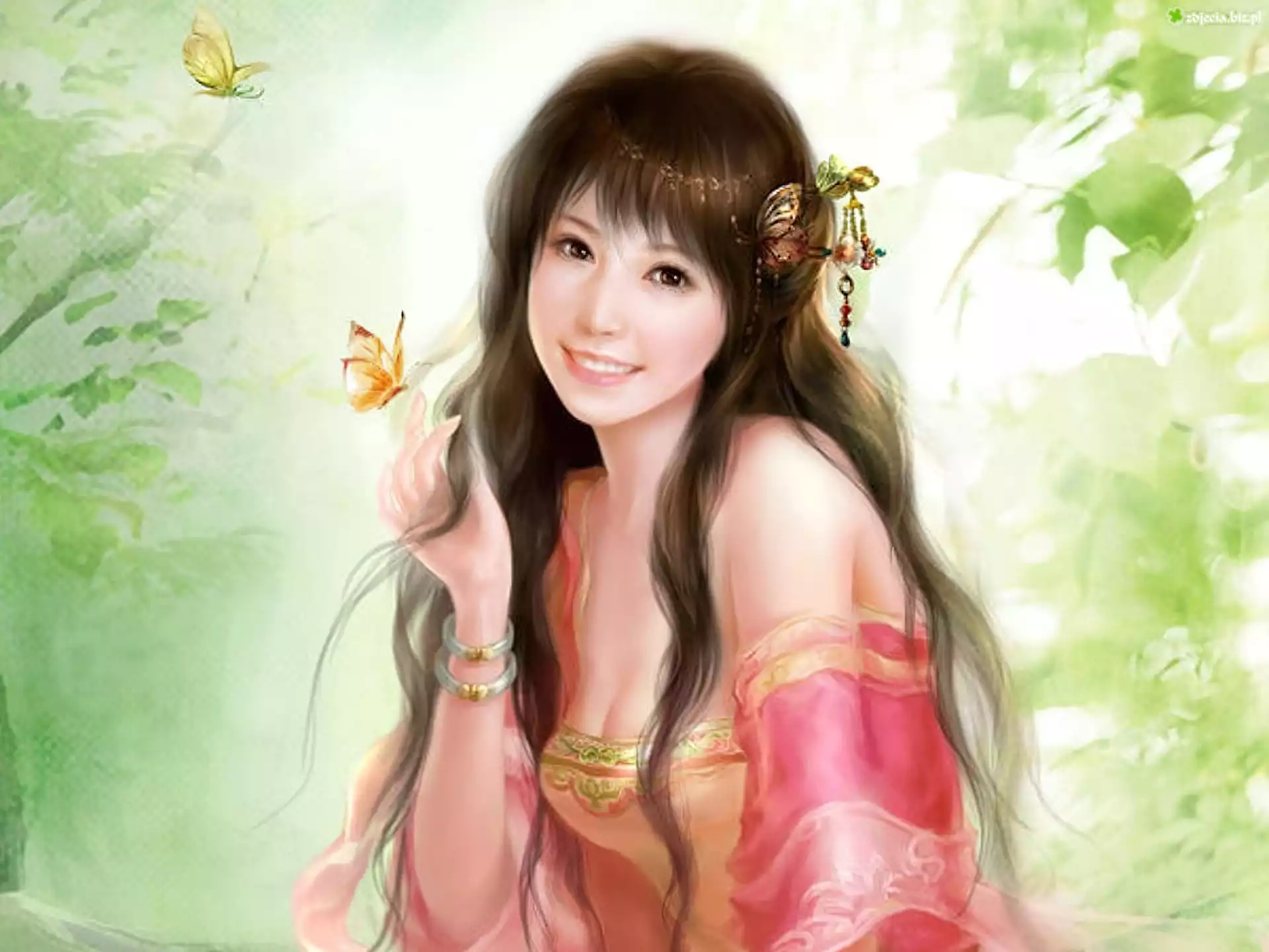 Zdjęcie Dziewczyna, Motyle, Zieleń