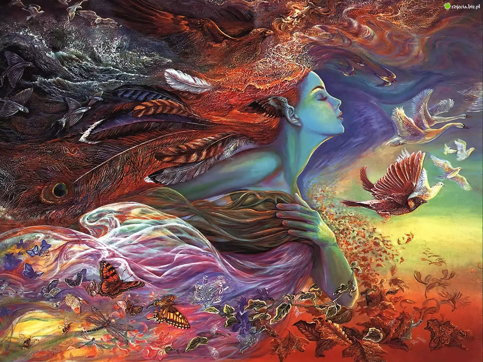 Zdjęcie Kobieta, Motyle, Ptaki