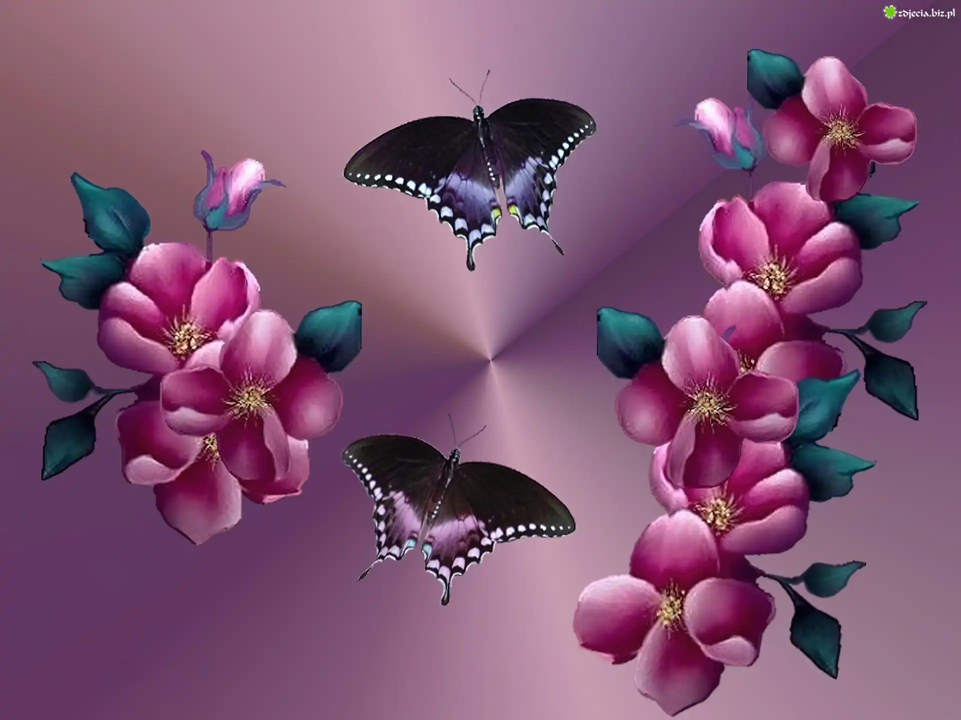 Zdjęcie Kwiaty, Motyle, Grafika