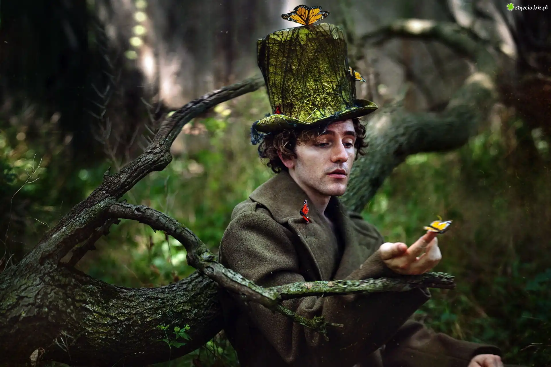 Zdjęcie Mężczyzna, Motyle, Las