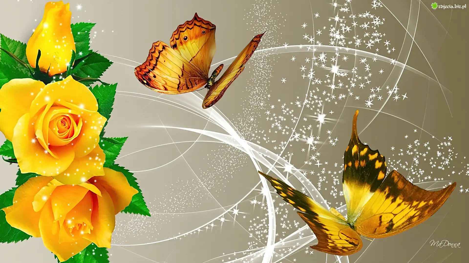 Zdjęcie Żółte, Róże, Motyle, Art