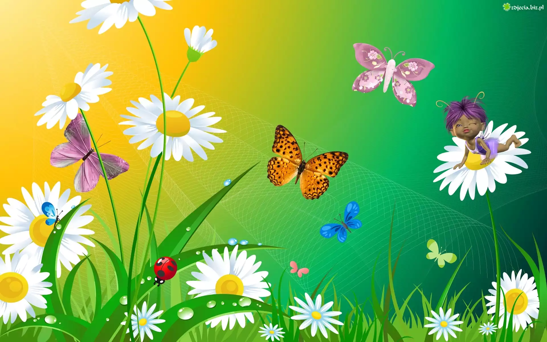 Zdjęcie Kwiaty, Motylki, Biedronka