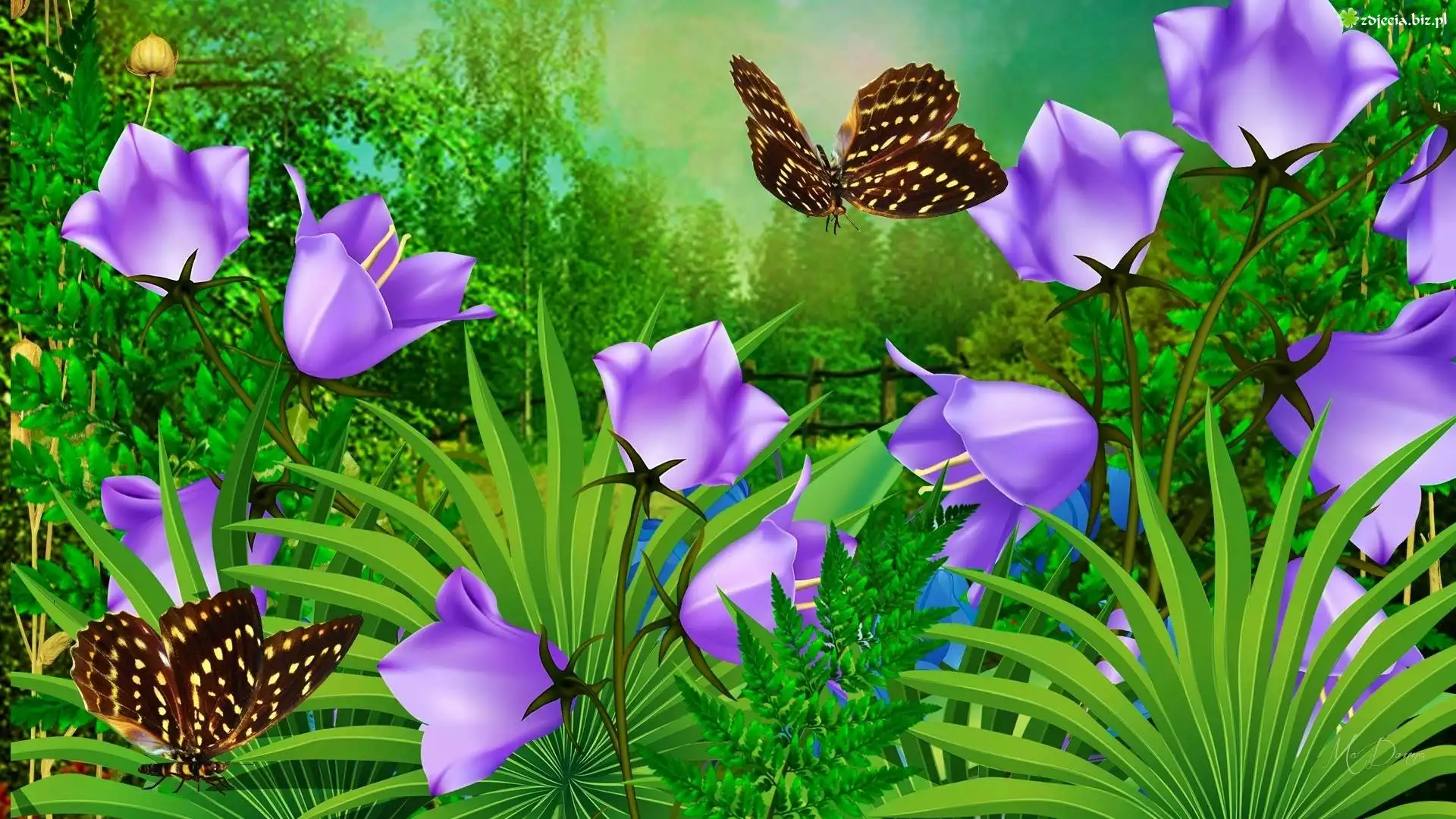Zdjęcie, Kwiaty, Motylki, Trawa