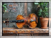 Zdjęcie, Skrzypce, Roślina, Doniczka, Mur, Deska, AI