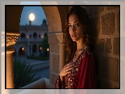 Zdjęcie Kobieta, Czerwona, Bluzka, Mur