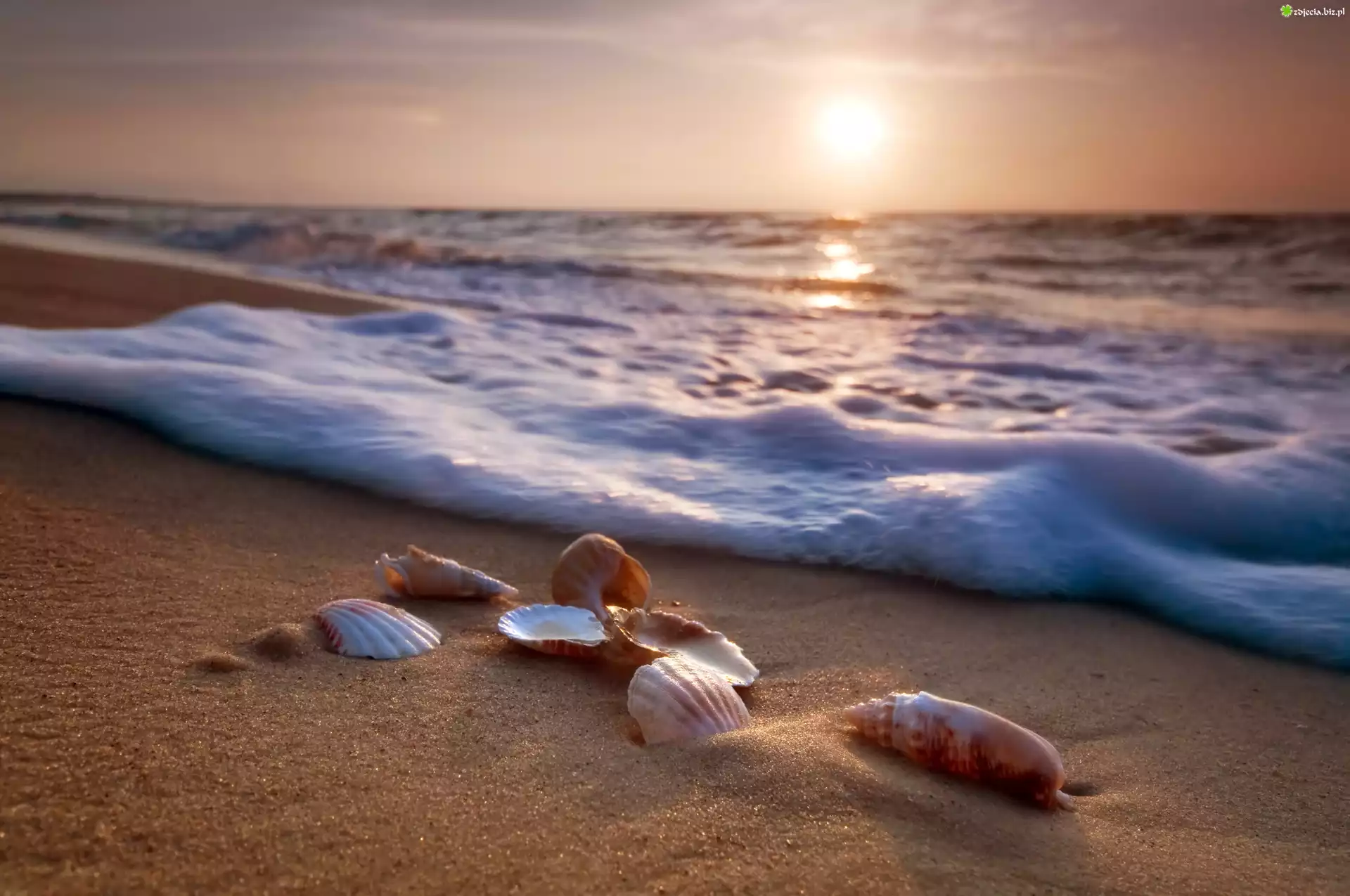 Zdjęcie Muszelki, Plaża, Morze, Słońce