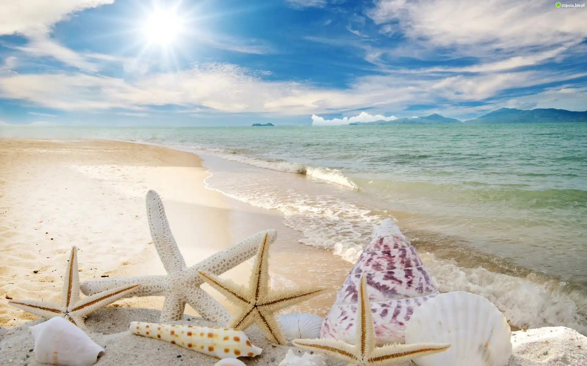 Zdjęcie Muszelki, Niebo, Morze, Plaża, Lato