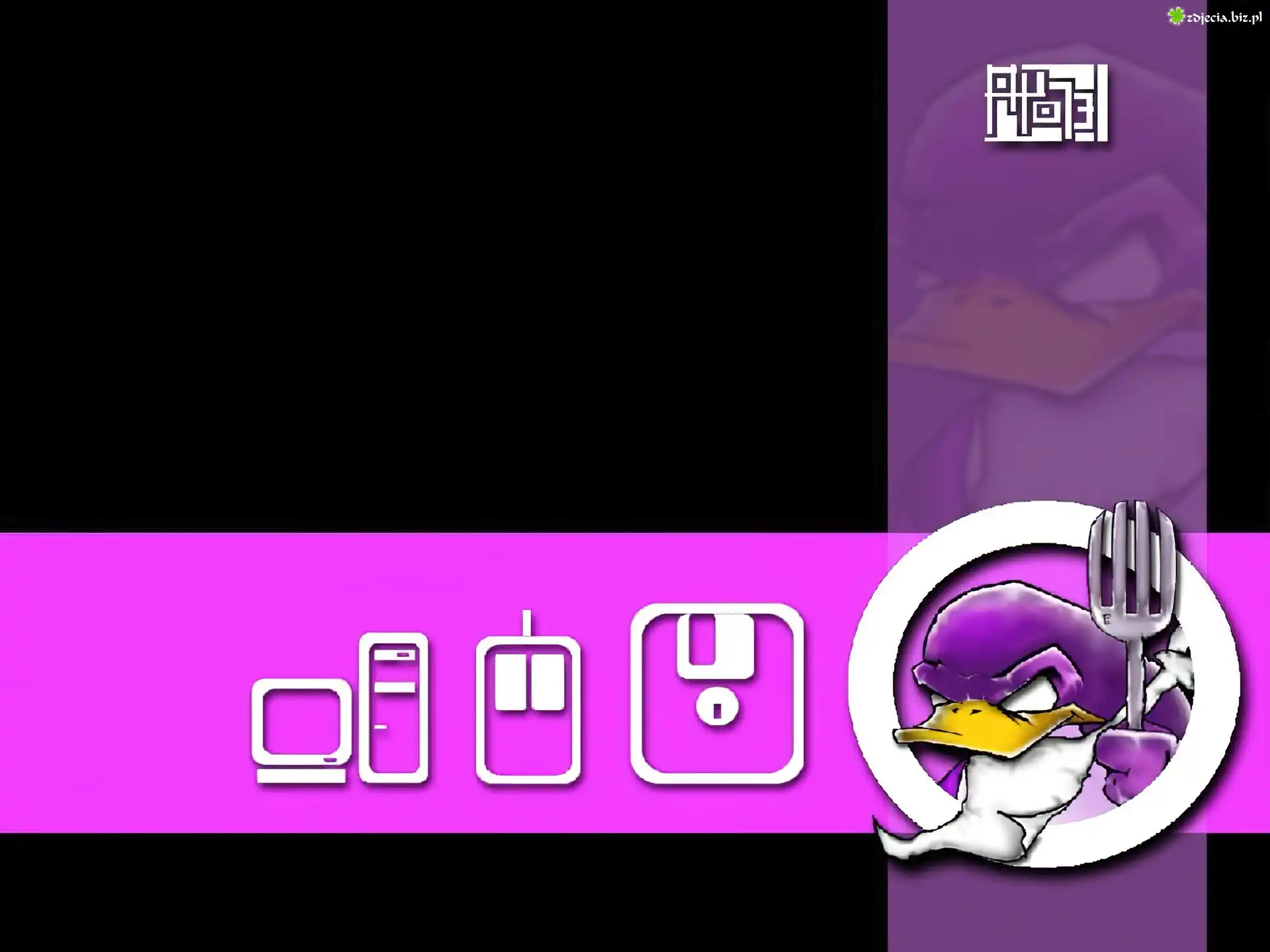 Zdjęcie, komputer, myszka, dyskietka, kaczka, pingwin, widelec, Linux