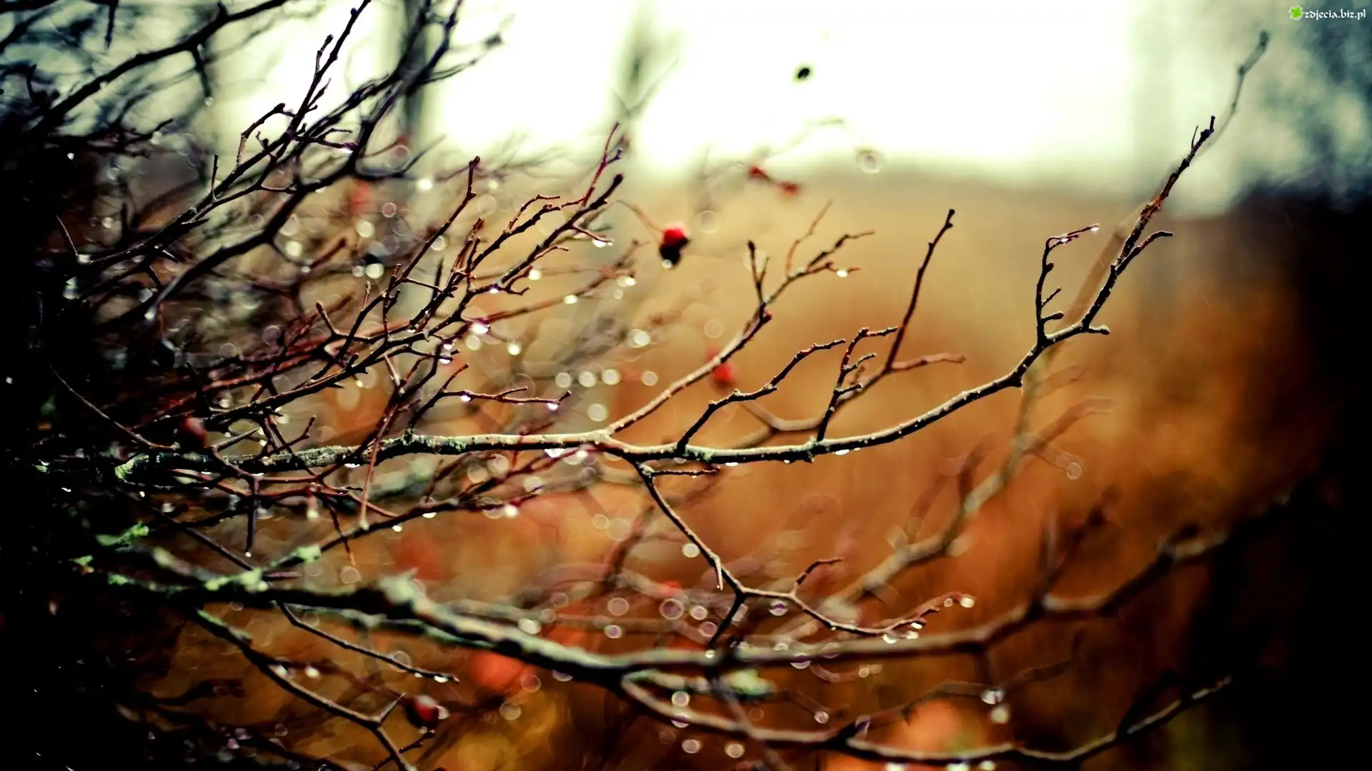 Zdjęcie Nagie, Gałęzie, Krople, Deszczu, Rozmycie