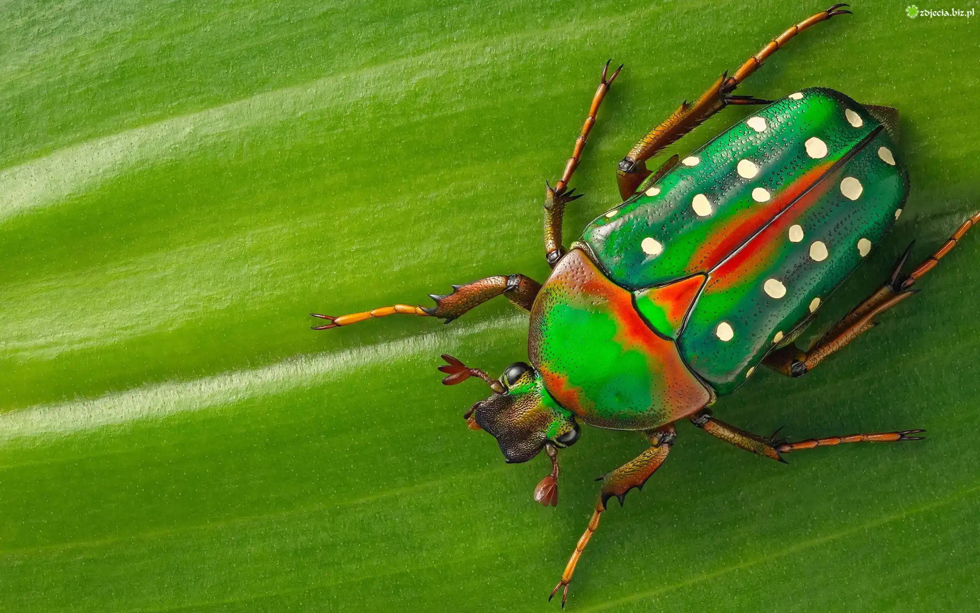 Zdjęcie Nakrapiany, Chrząszcz, Stephanorrhina guttata, Zielony, Liść