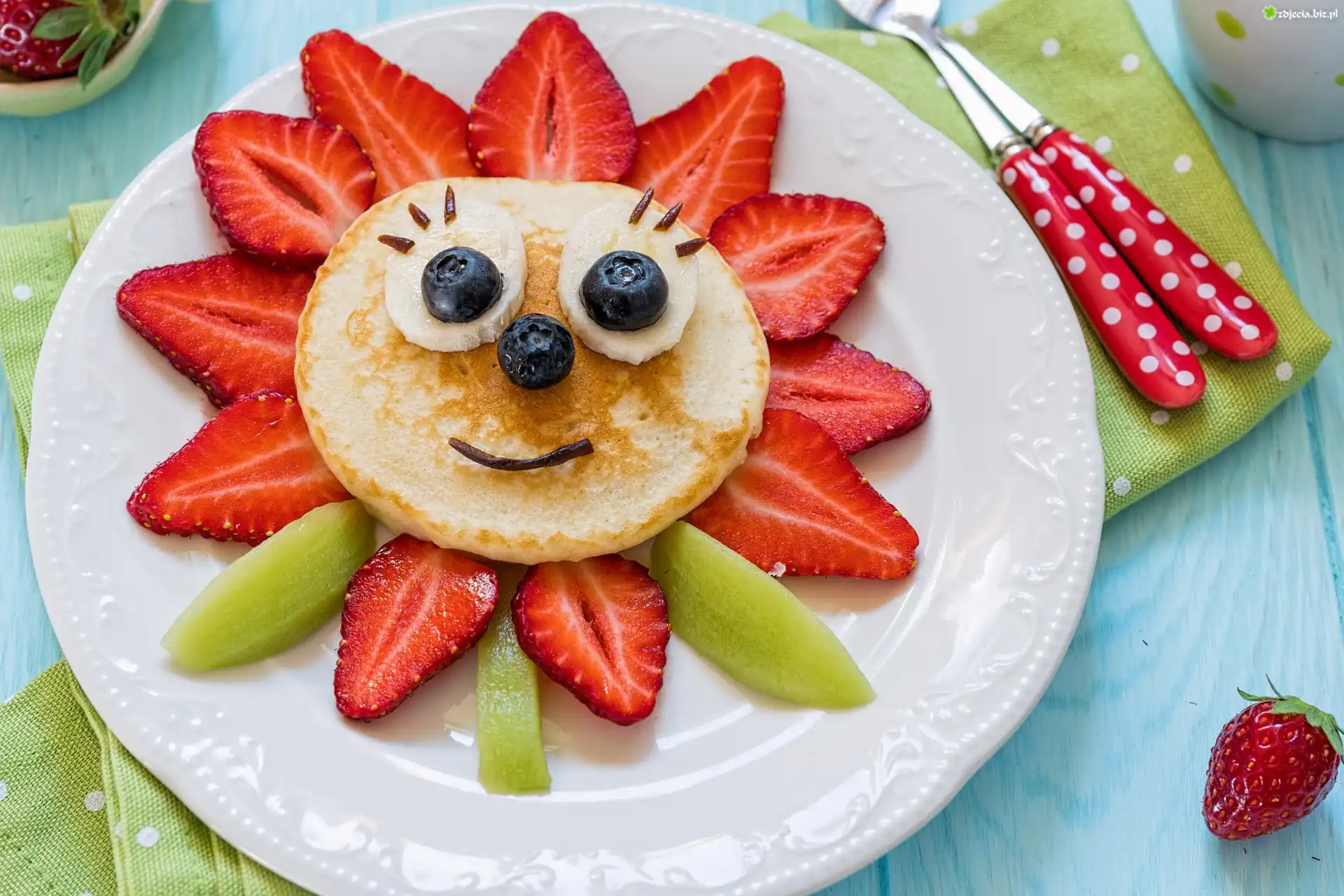 Zdjęcie, Naleśnik, Truskawki, Buzia, Talerz