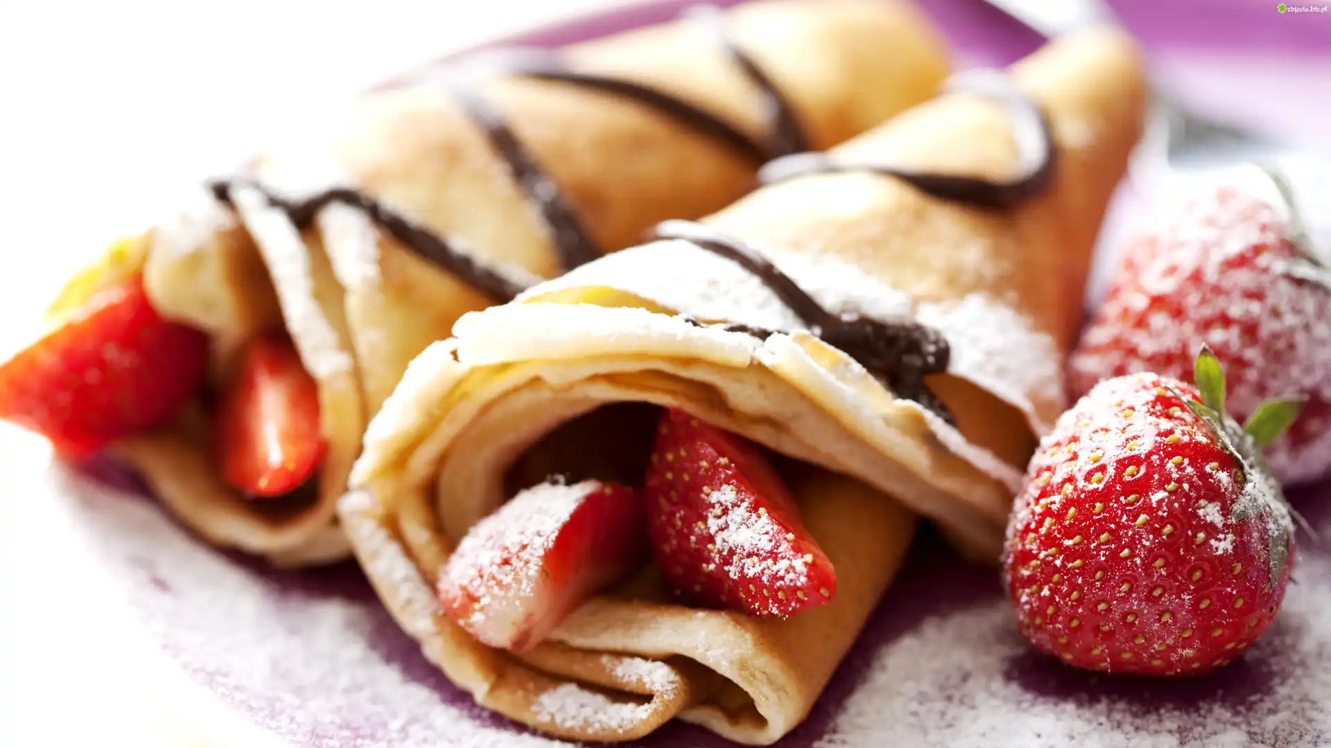 Zdjęcie Naleśniki, Truskawki, Cukier, Puder