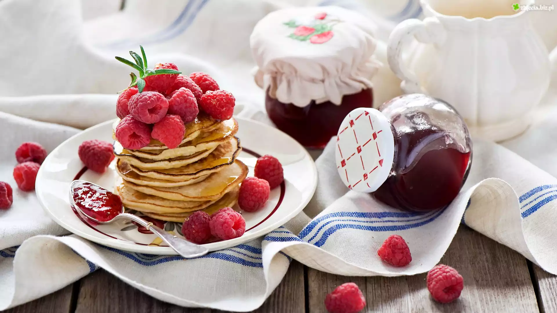 Zdjęcie Naleśniki, Maliny, Dżem, Ściereczka