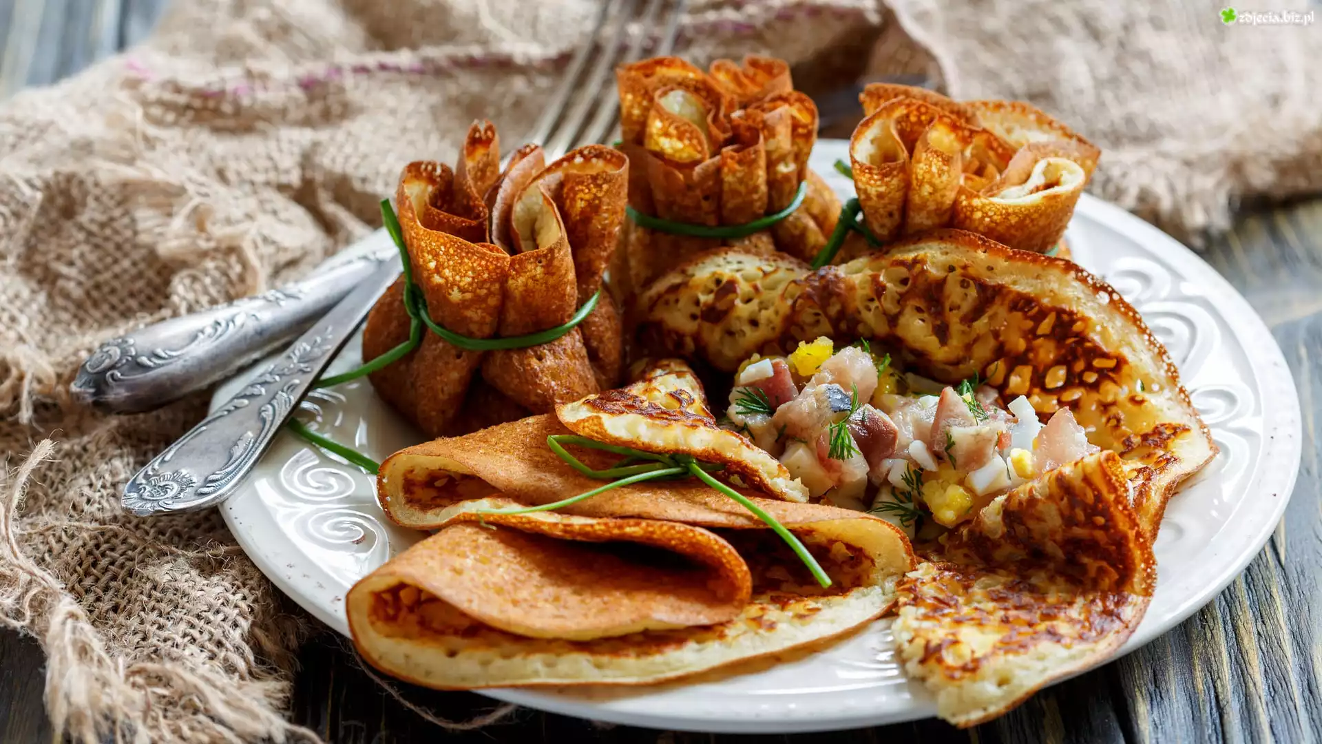 Zdjęcie Naleśniki, Talerz, Widelec, Serweta